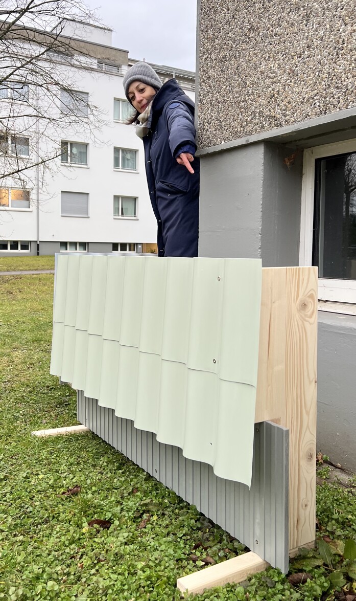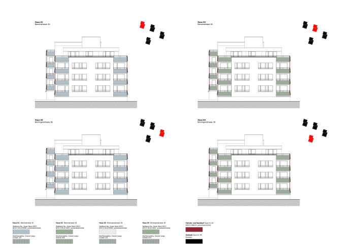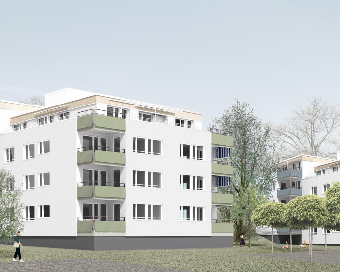 To enhance the visibility of the recessed ground-floor entrances, these will be fitted with coated corrugated metal profiles.