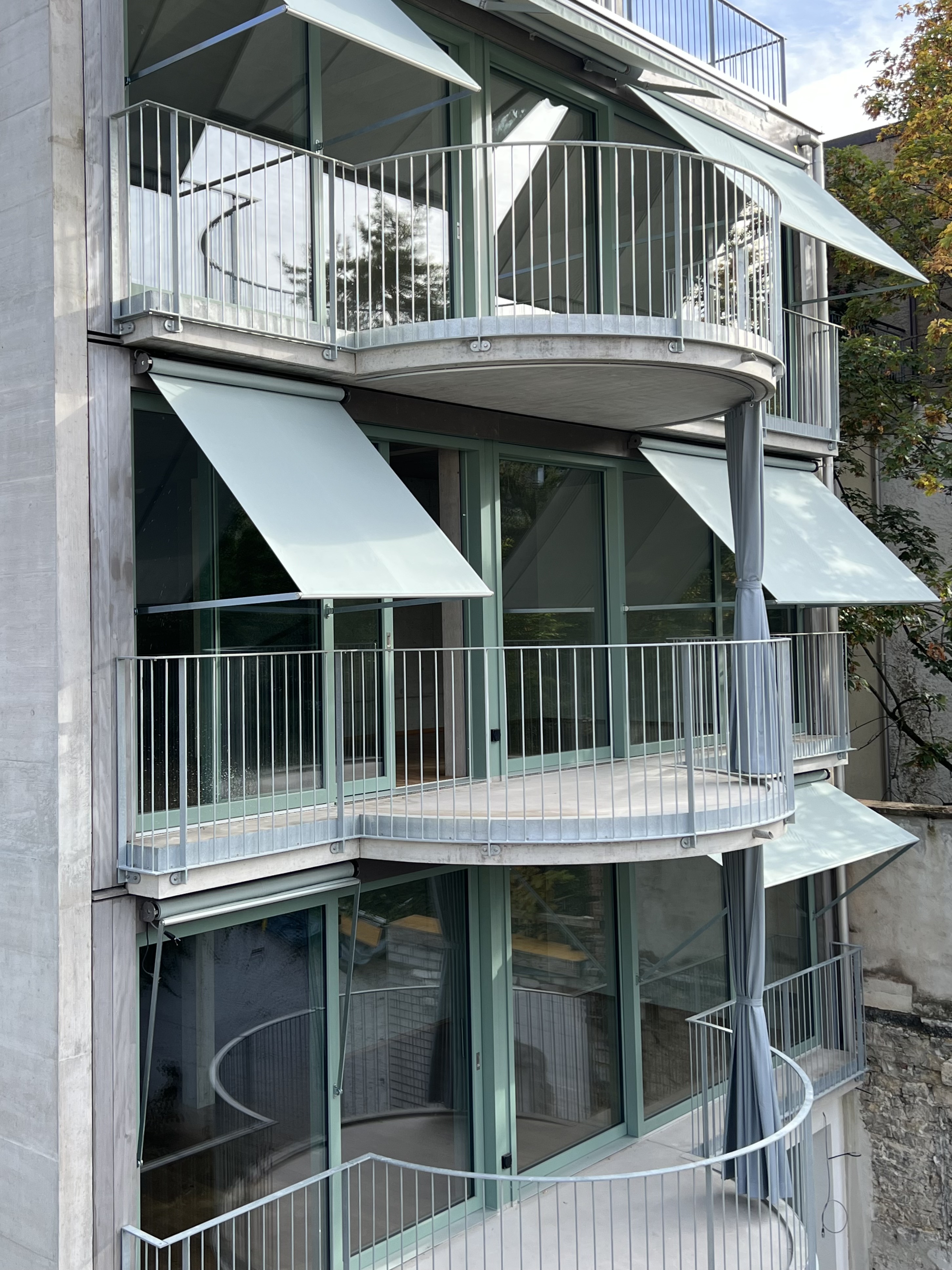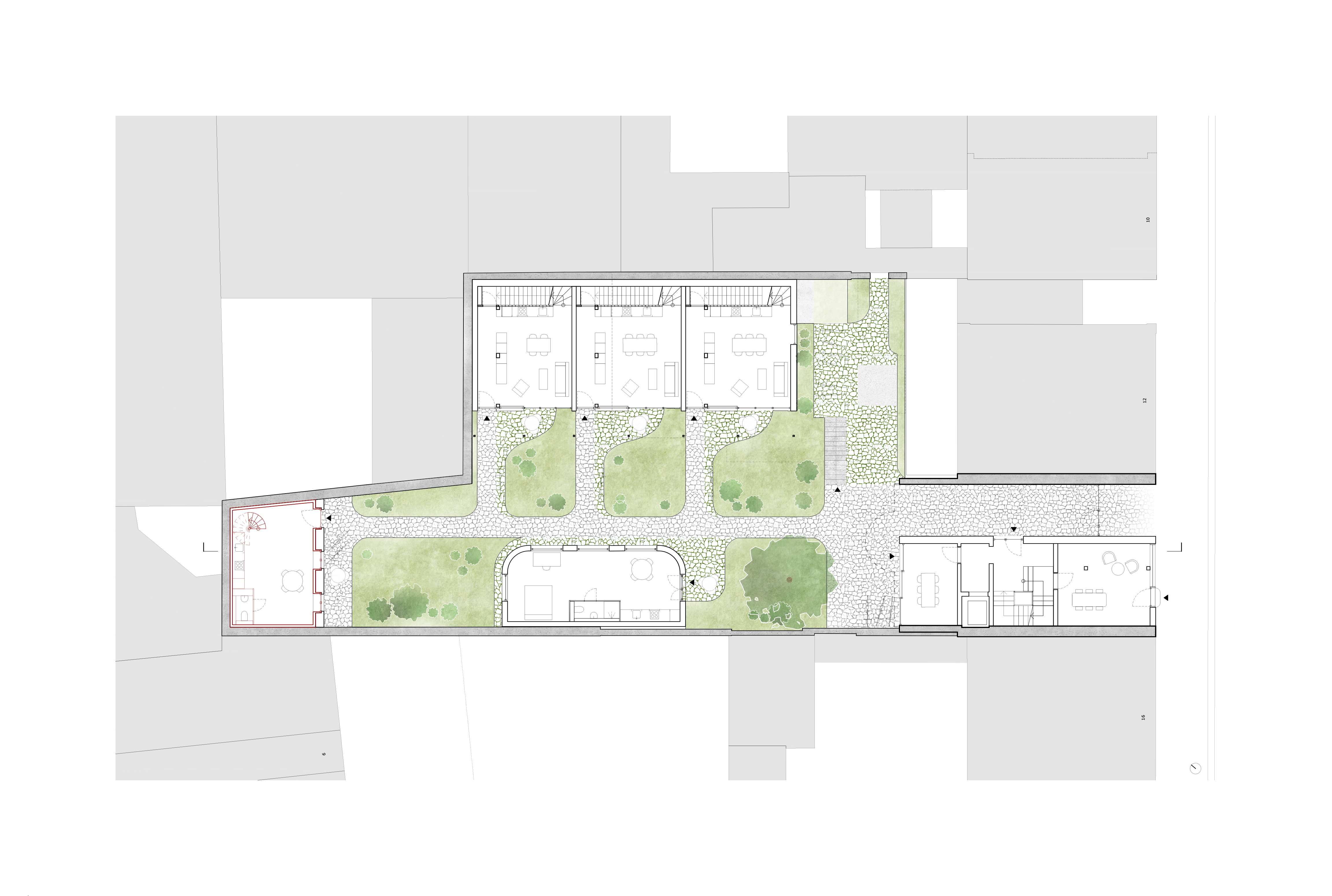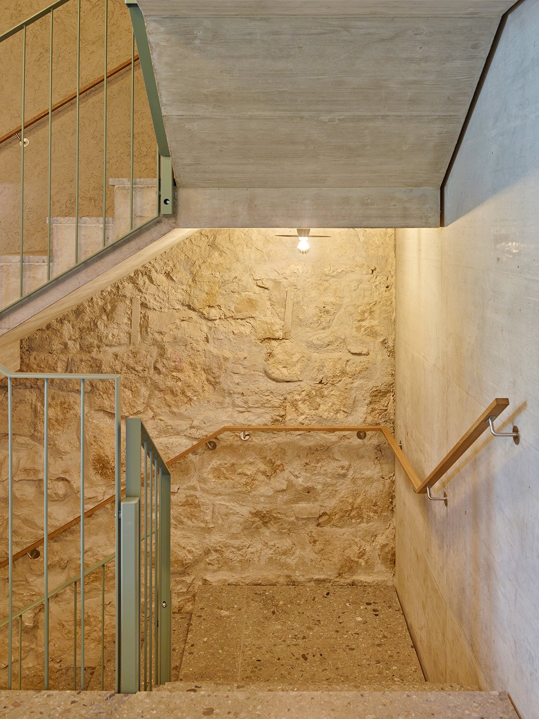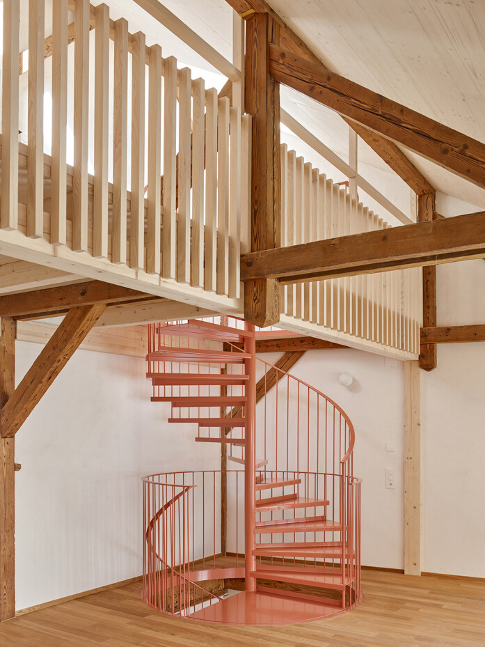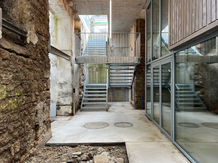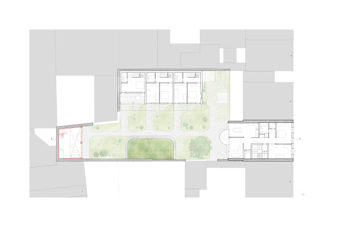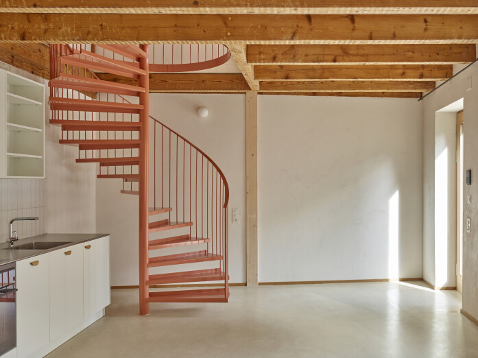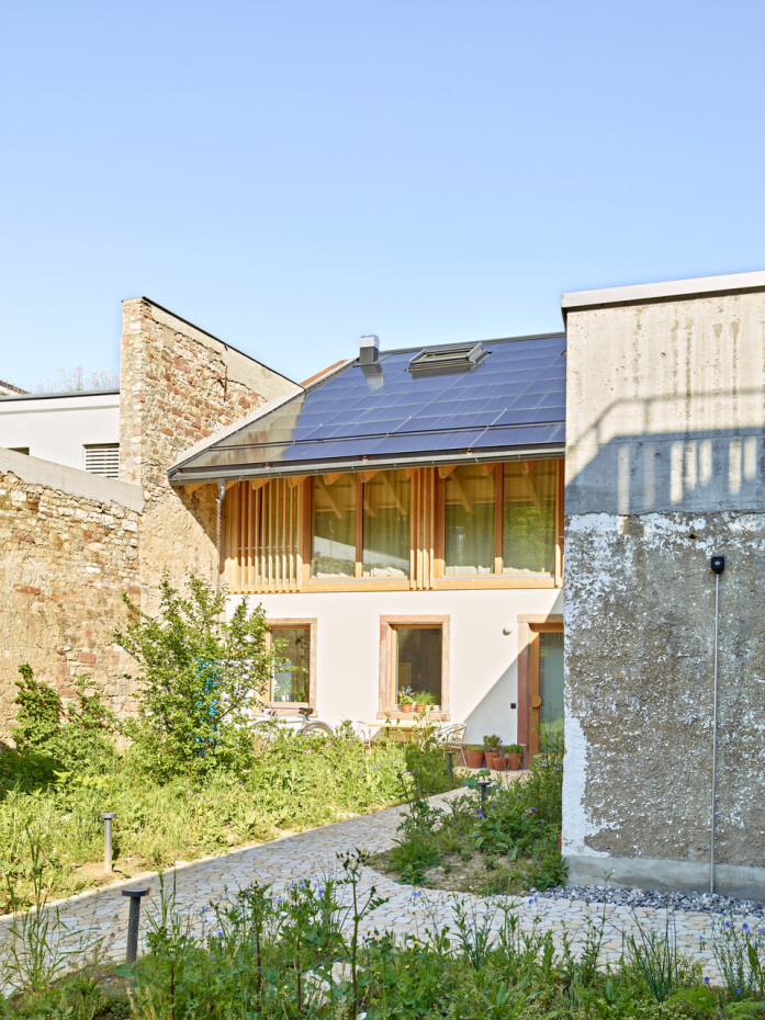 The as-found situation of a courtyard framed by natural stone walls and climbing plants, characterised by small buildings, workshop sheds, a hidden over-height natural stone wine cellar and a horse stable dating from 1889, shaped and inspired the urban concept. These elements determined the site-specific interventions and the addition of three new buildings, which together form a new whole with a wide variety of residential types.