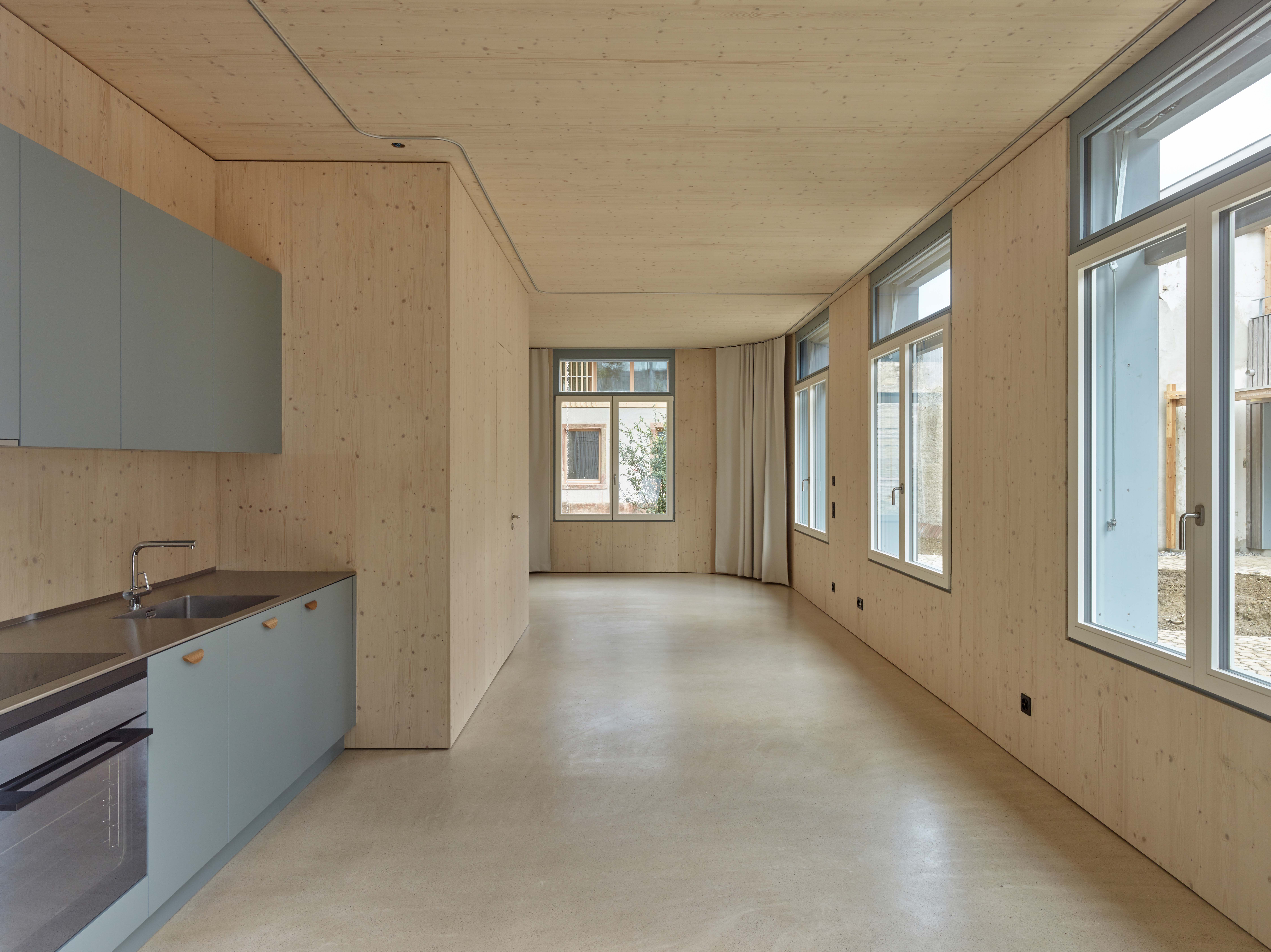 A dense urban ensemble of housing, small shops and studios is developed and constructed in a typical Basel backyard from the turn of the century. The new living and working spaces are arranged along the existing courtyard walls and are realised both as conversions of existing structures and as complementary new buildings. The spatial and social centre of the project is the communal courtyard, which is equally accessible to all tenants and serves as a gathering place.