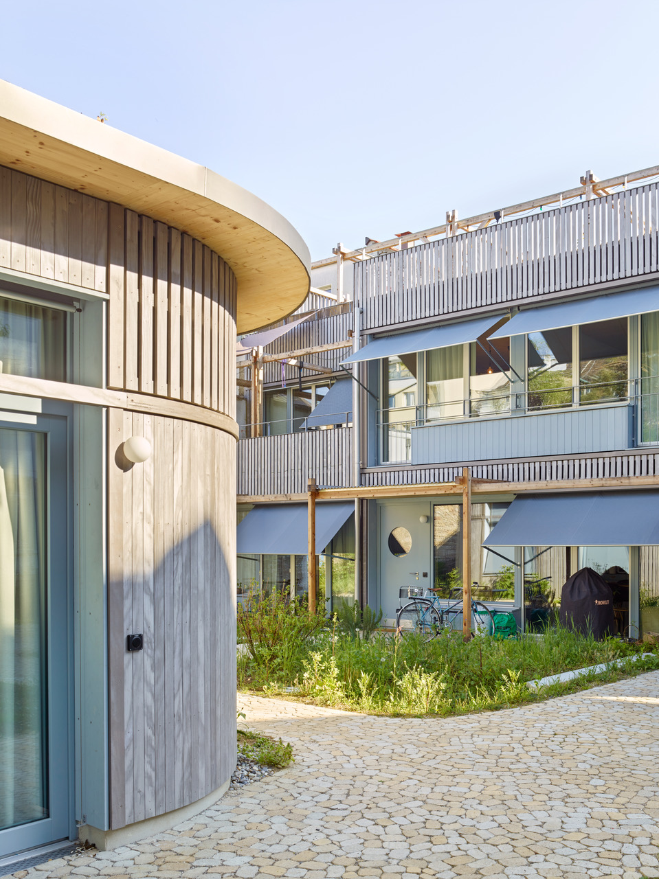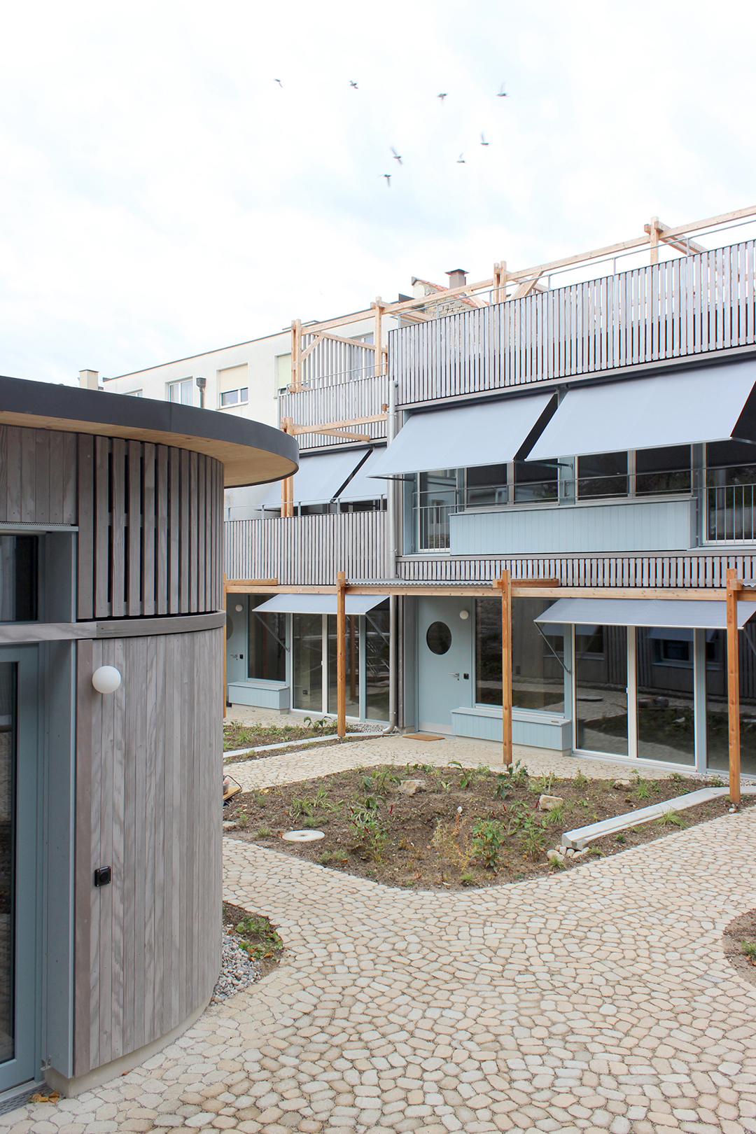 Not only the ecological and reduced materialisation accompanied by direct construction methods were in the foreground, but also the social sustainability preserved through the idyllic, intimate and small-scale atmosphere of the plot.
