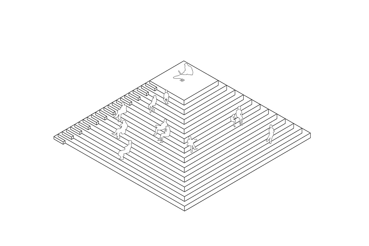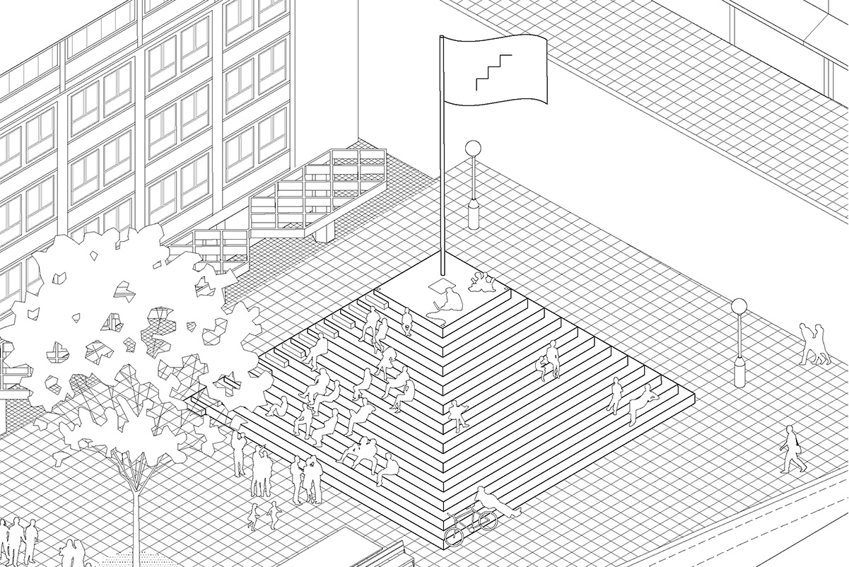 Our proposal is to introduce a set of stairs within the square as a catalyst for public activity. The stair will have no specific use and will lead to nowhere. It will merely act as a generator for social interaction, offering a place to sit, to discuss, to rest or to climb and observe the spectacle of the square from.