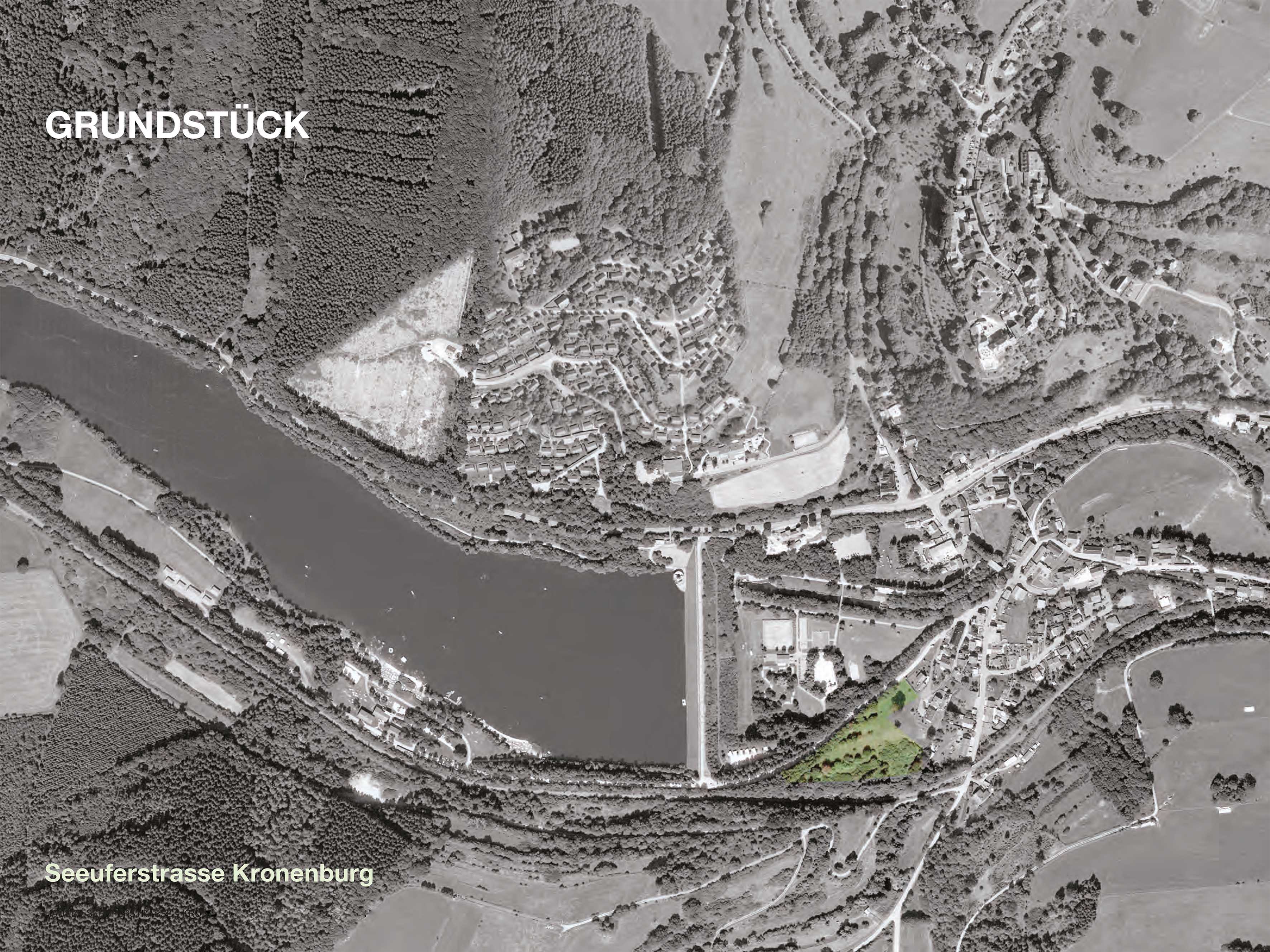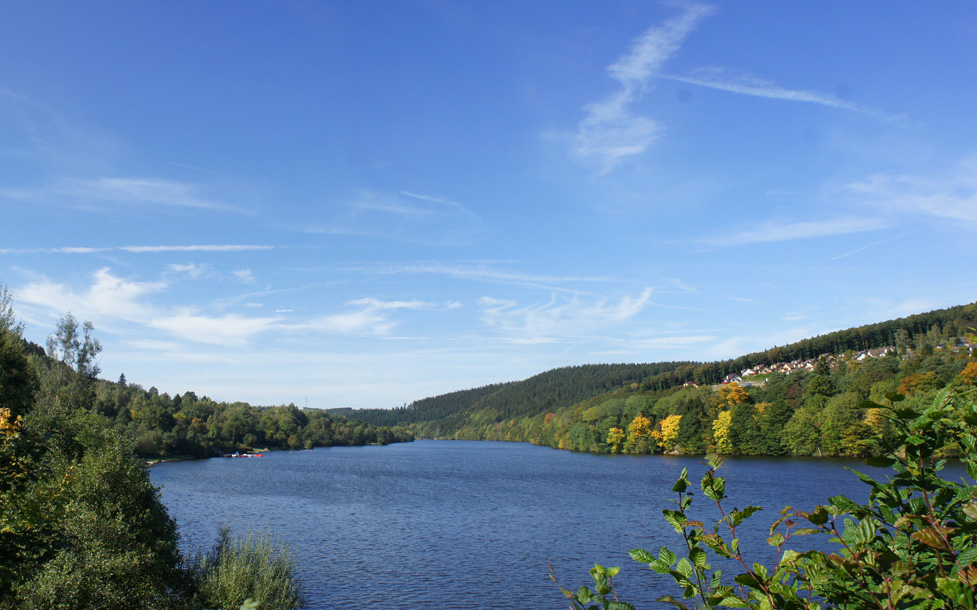 The 1.1 hectare property is situated on a small hilltop with a beautiful view to the medieval town Kronenburg, to the lake and to the wooded hills.