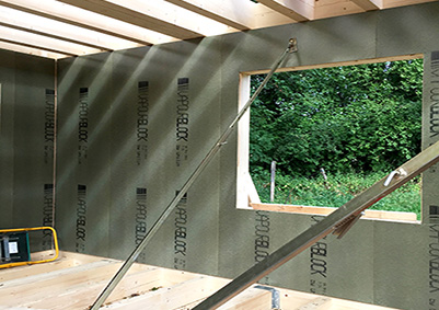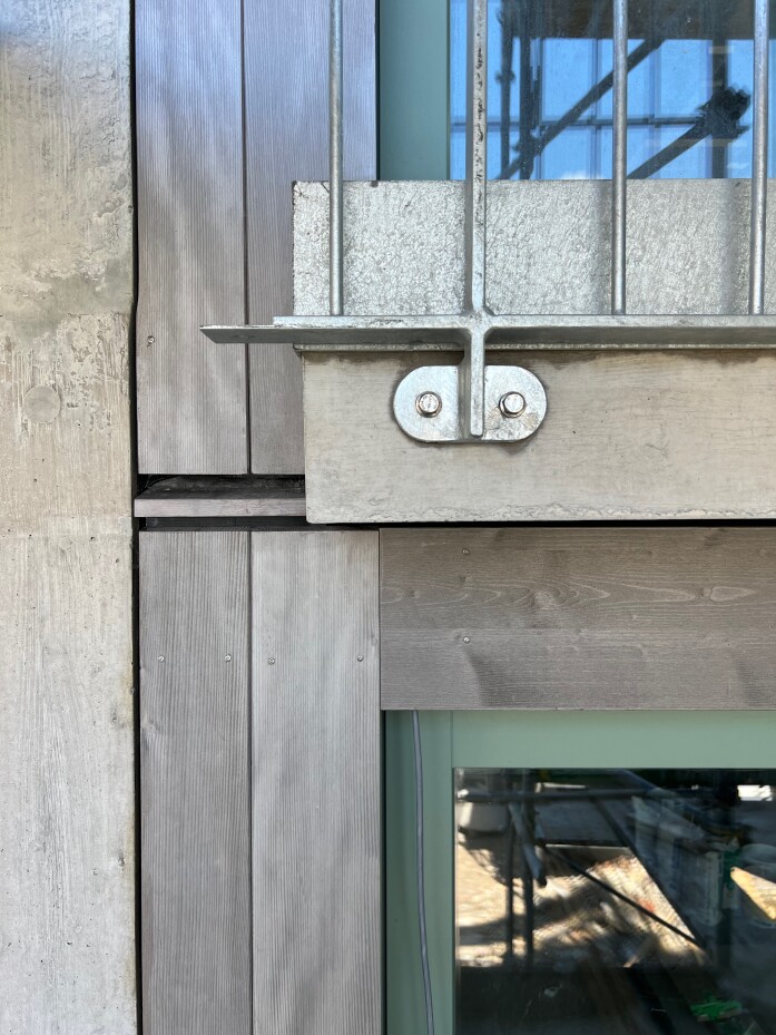 Installation of cantelivering concrete roof elements on loadbearing wooden closets