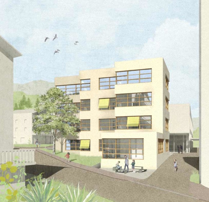 The Planning for the 1st Prize competition entry of Zur Rose elderly care center and new retirement apartments begins