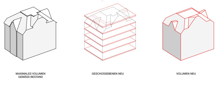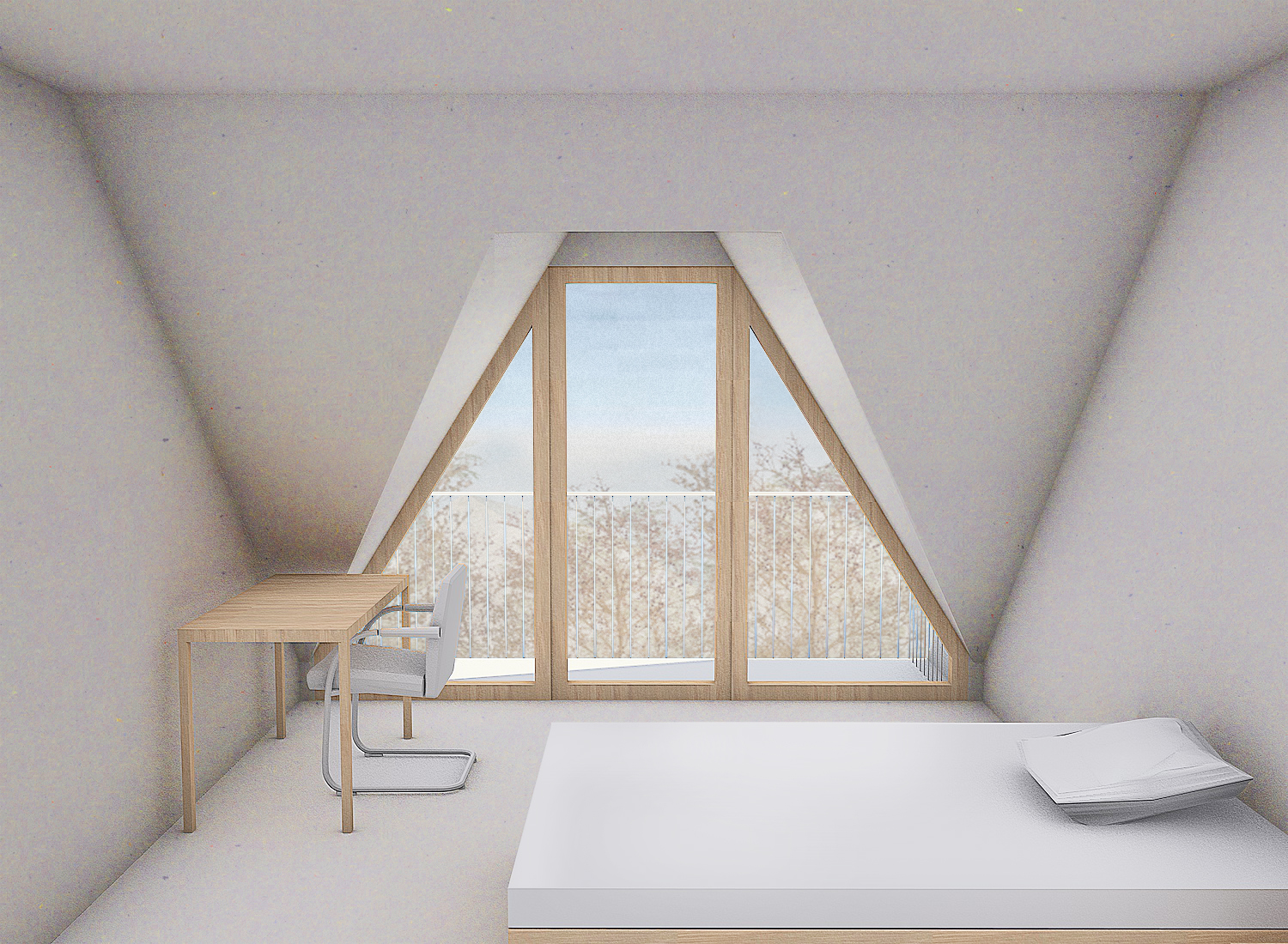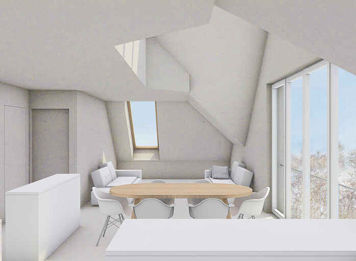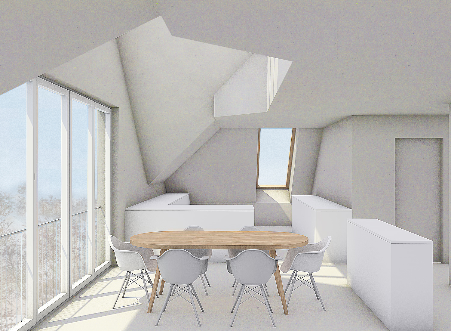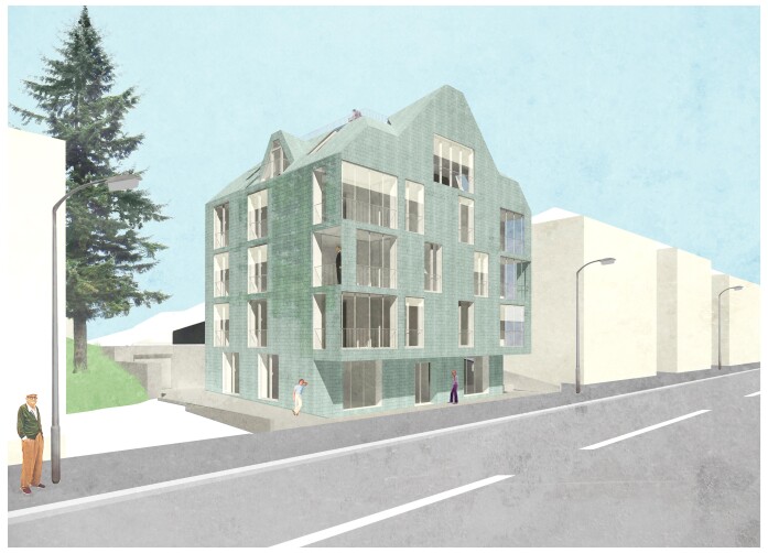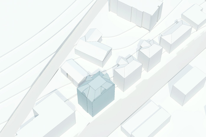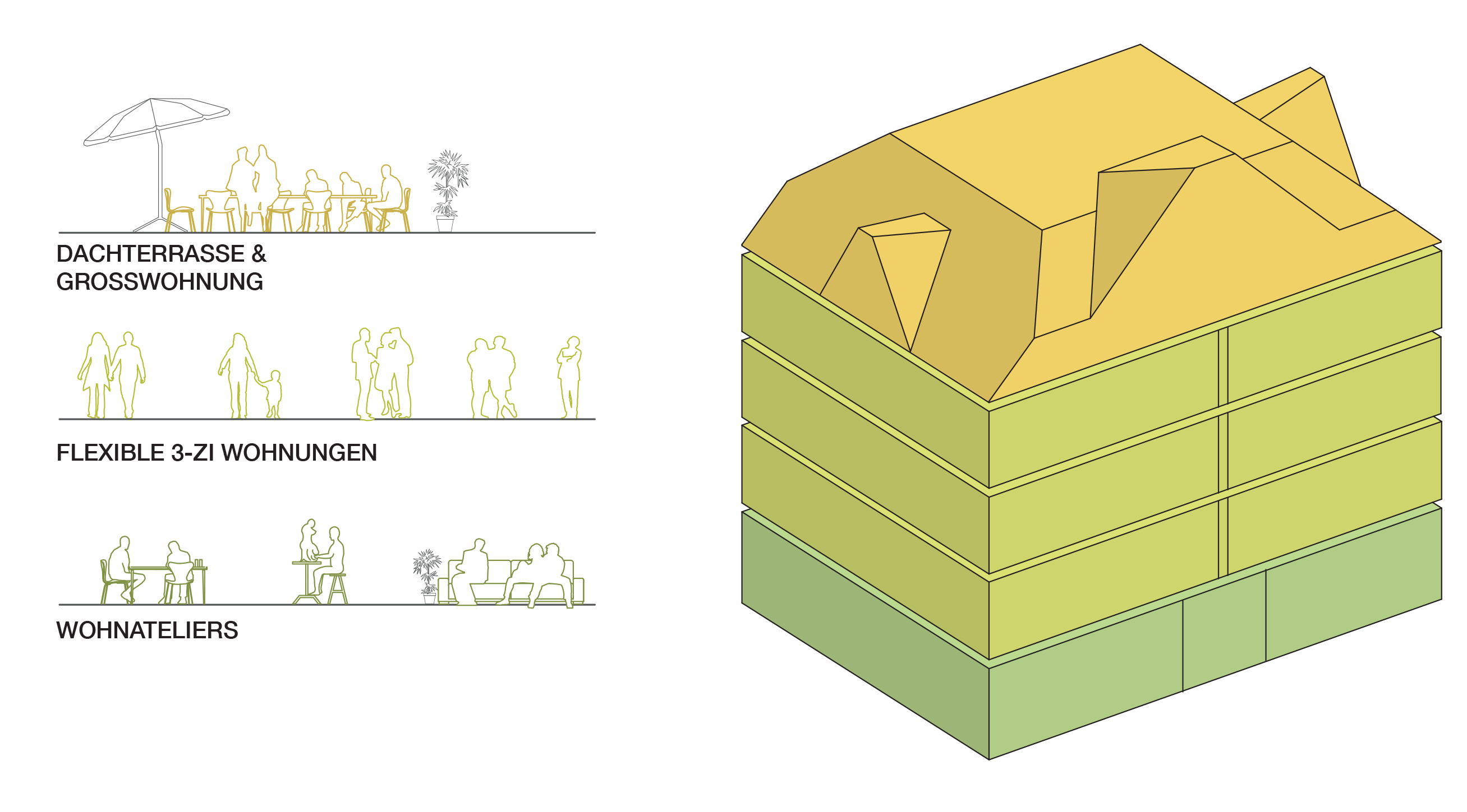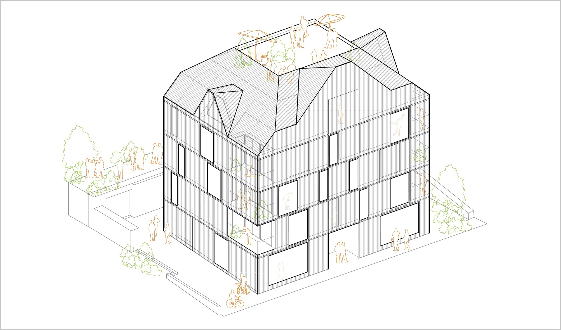 Mixed-use living & workingproject: Feasibility study for a new mixed-use building within an existing volume envelope: regular apartments, shared student apartments, co-working, studios, 2016
